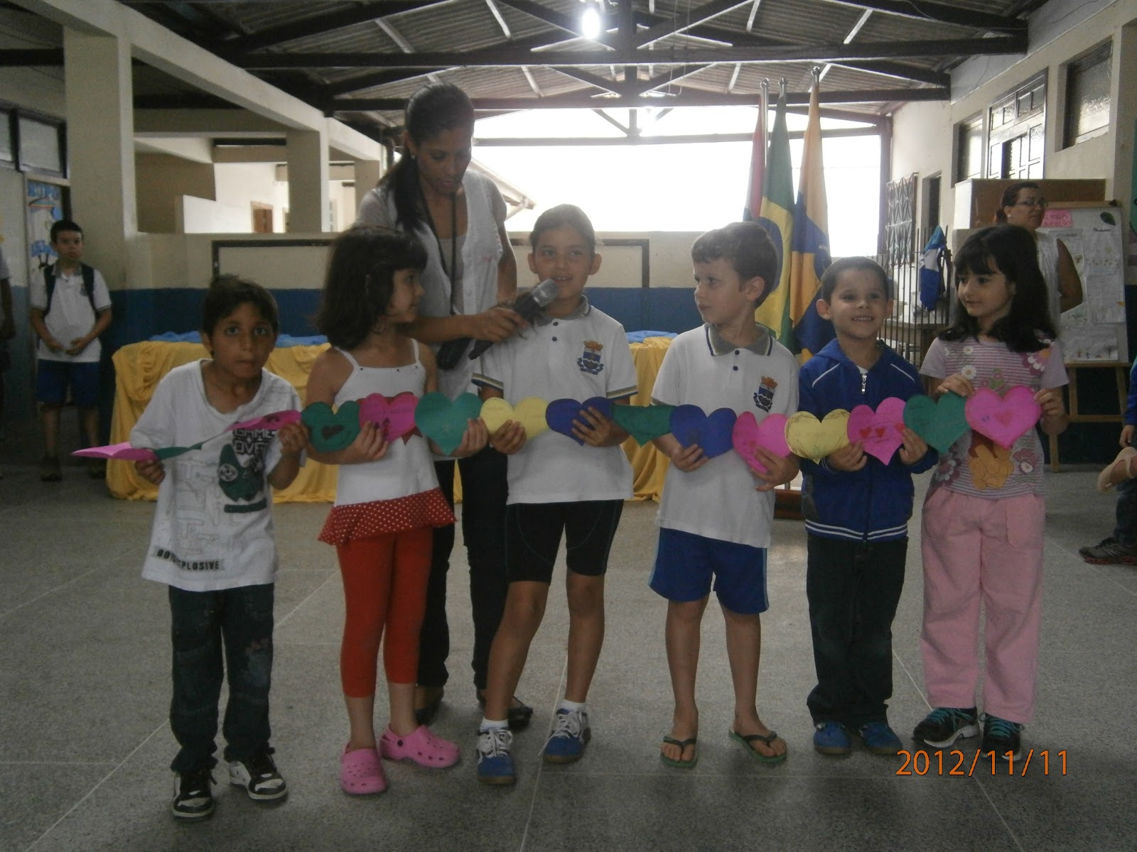 A TURMA 102 (Prof. Carla Gomes de Oliveira) e a TURMA 202 - Prof. Eliane Falletti de Araújo - ambas as turmas apresentaram-se ao som da música "Vem chegando o natal" da Xuxa.
